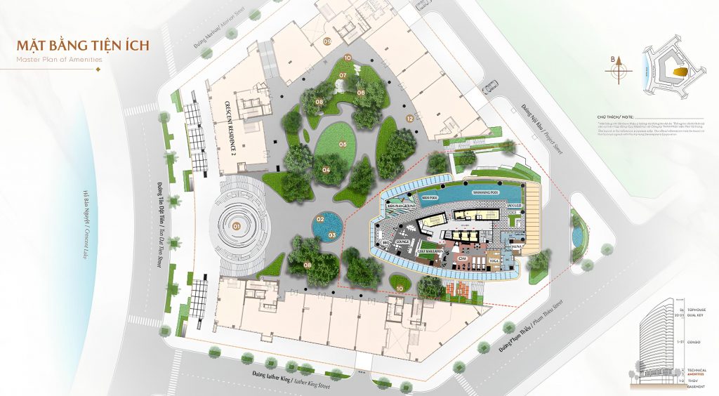 Vị trí là yếu tố quyết định giá trị bất động sản, và The Regency sở hữu địa thế “không thể nhân đôi”. Tọa lạc tại lô đất CR5-1B, 4 mặt tiền đường khu The Crescent, phường Tân Phú, Quận 7, dự án nằm sát Hồ Bán Nguyệt – biểu tượng văn hóa và giải trí của Phú Mỹ Hưng. Chỉ vài bước chân, cư dân đã tiếp cận Cầu Ánh Sao, Công viên Ánh Trăng và Crescent Mall.