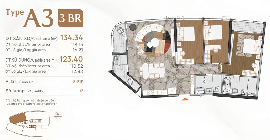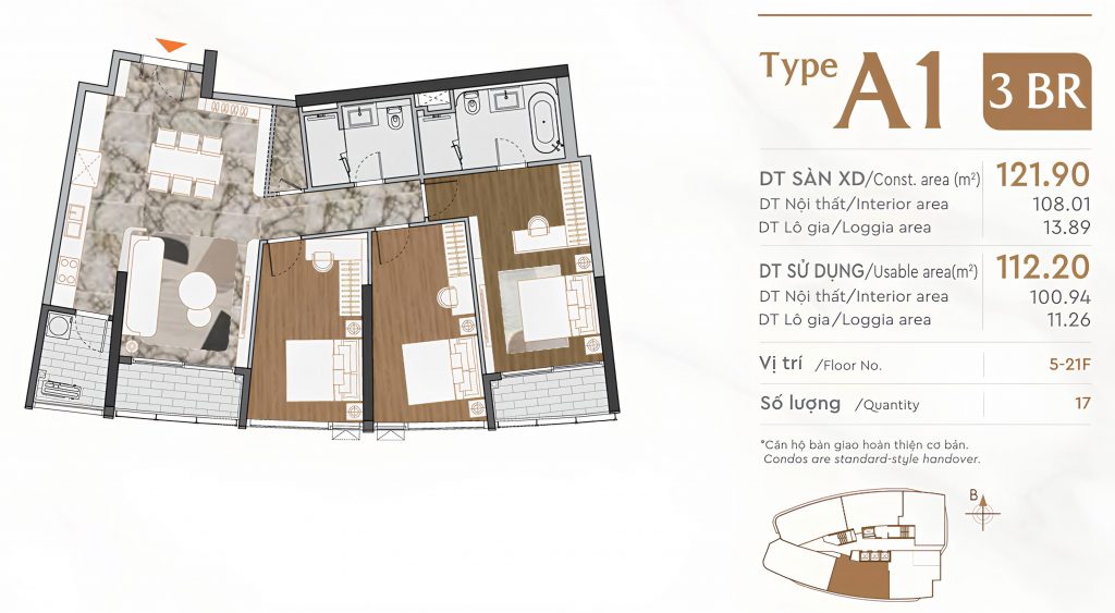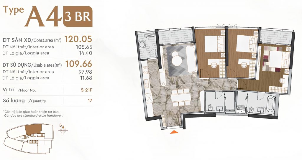 Tầng 5-21Mỗi căn hộ có ít nhất 3 ban công đón gió và ánh sáng