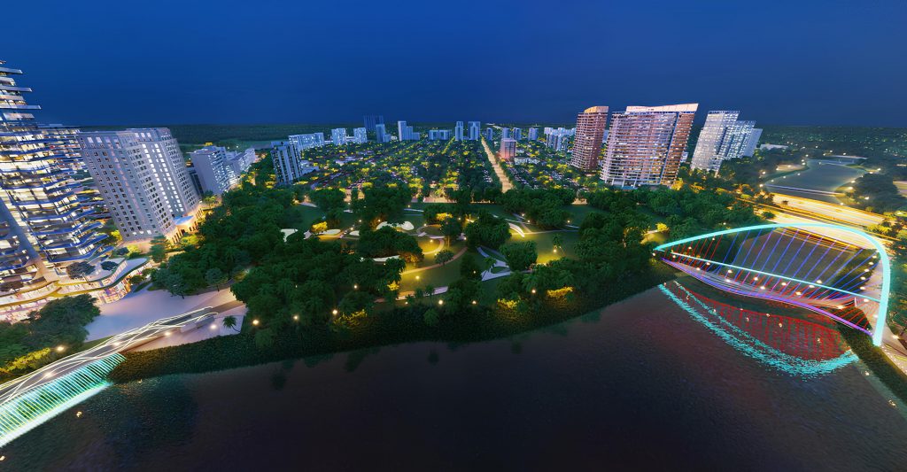 Tầm nhìn trực diện Hồ Bán Nguyệt, Công viên Ánh Trăng và Cầu Ánh Sao tạo không gian thư giãn, ngắm hoàng hôn lung linh. Dual key và penthouse sở hữu view 360 độ, mỗi căn hộ thành “dinh thự trên không”.